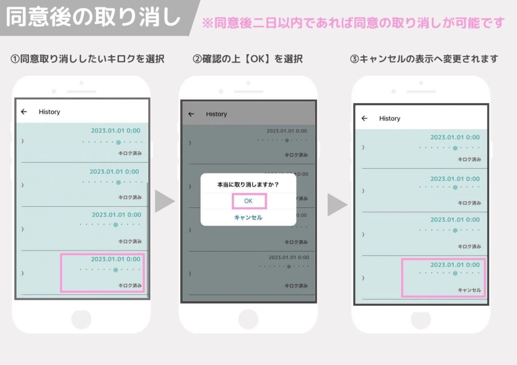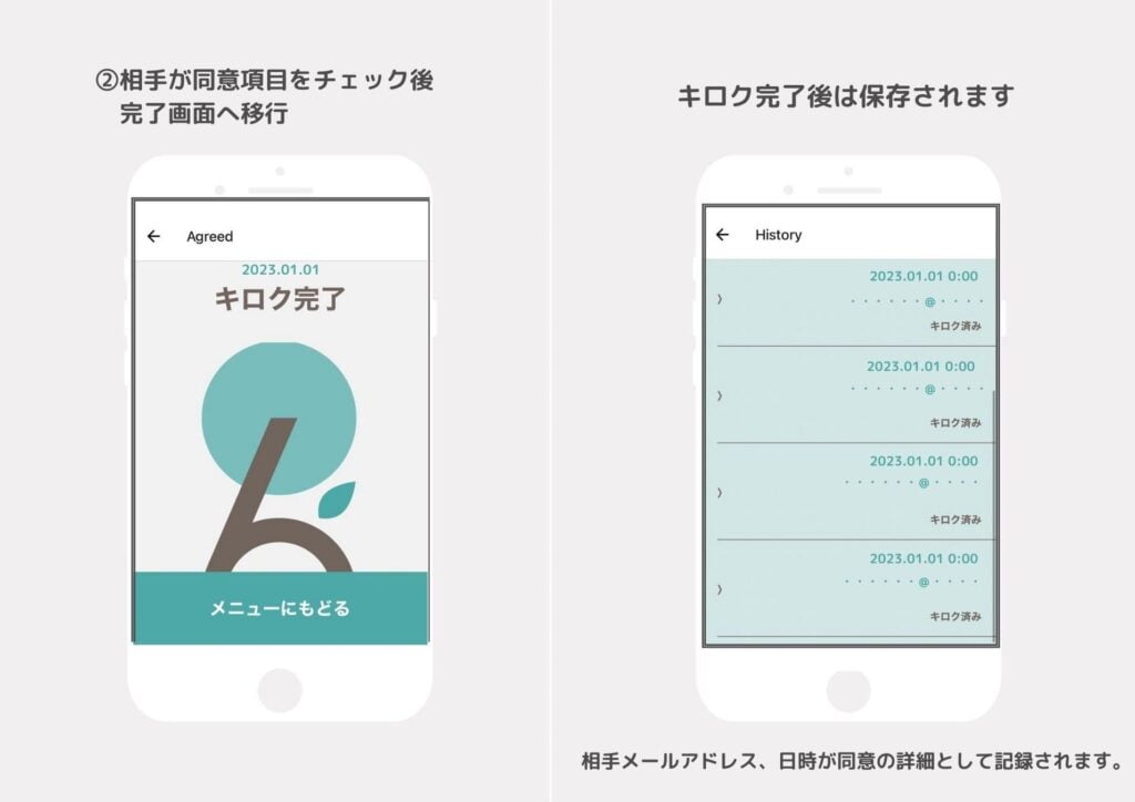 ※同意をした記録はアプリ内で蓄積され証拠として使用することが可能です。